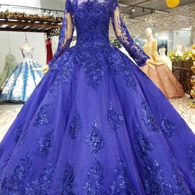 Gaun pengantin warna biru tua wedding dress sabrina bk010. Padahal nak buat collection ja pun . Gaun pengantin royal blue lace wedding dress beaded bride dress. Baju nikah sanding navy blue blue wedding gowns, muslim wedding dresses, . Gaun wedding pengantin elegan tinggi leher afrika muslim renda royal blue.